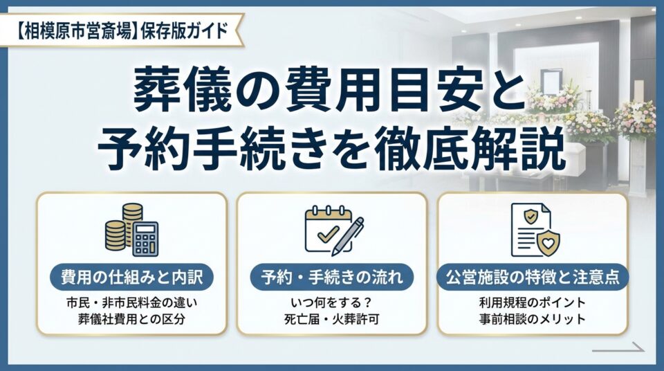 相模原市営斎場で葬儀を行う際は、費用の全体像と予約・手続きの流れを先に把握しておくと、万が一の時も落ち着いて判断できます。