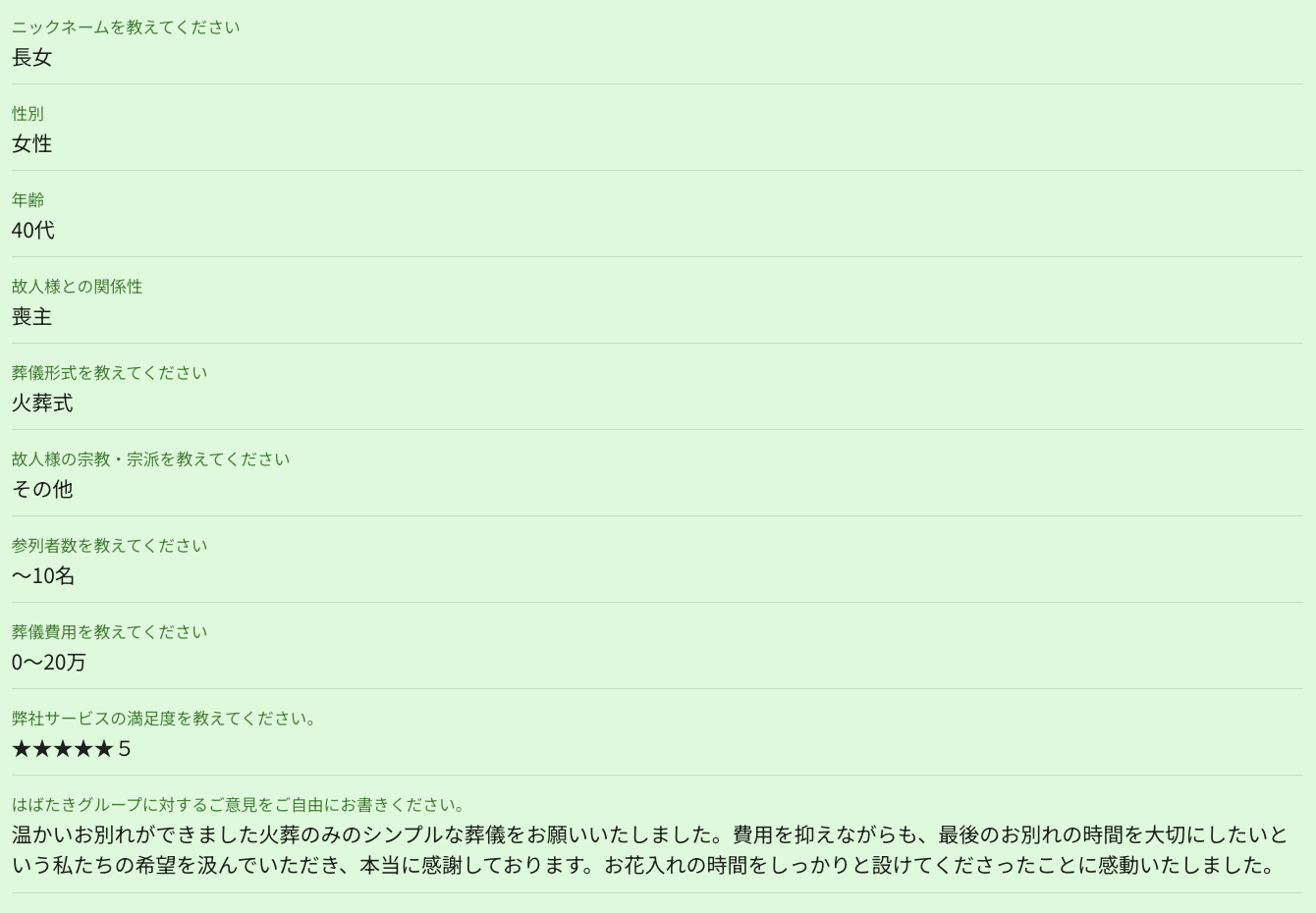 川崎家族葬では、葬儀を終えられたご家族の方にアンケートにご協力いただき、より良いサービスの提供に努めております。
