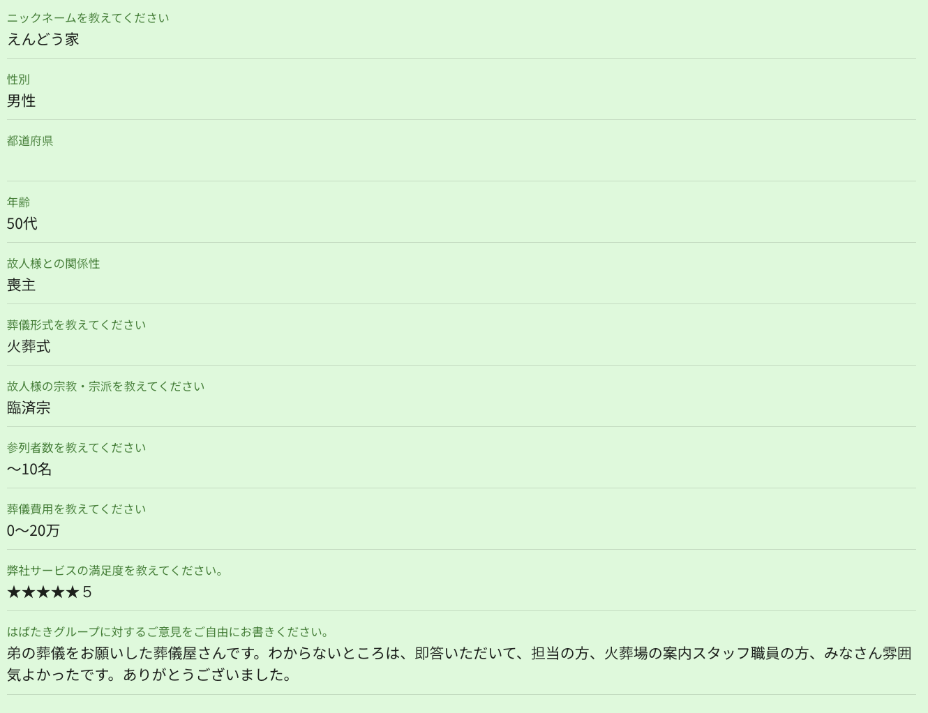 川崎家族葬では、葬儀を終えられたご家族の方にアンケートにご協力いただき、より良いサービスの提供に努めております。
