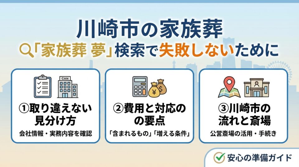 家族葬 夢 川崎市で取り違えない見分け方と費用/対応の確認ポイント【安心】