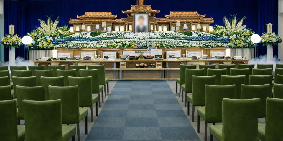 多摩区の斎場に親族・友人・会社関係者などが集まります。