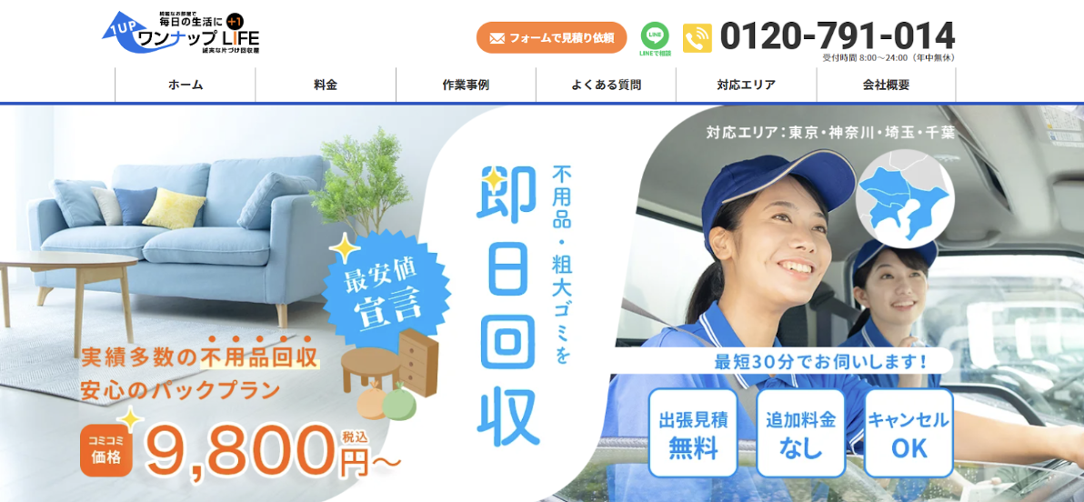 ワンナップLIFEは、不用品や粗大ゴミの回収をはじめとした生活サポートを提供する専門業者です。年間15,000件以上の作業実績を持ち、東京都・神奈川県・千葉県・埼玉県を中心に迅速かつ丁寧な対応で多くの信頼を集めています。出張見積もりは無料、追加料金なしという明快な料金体系も好評です。