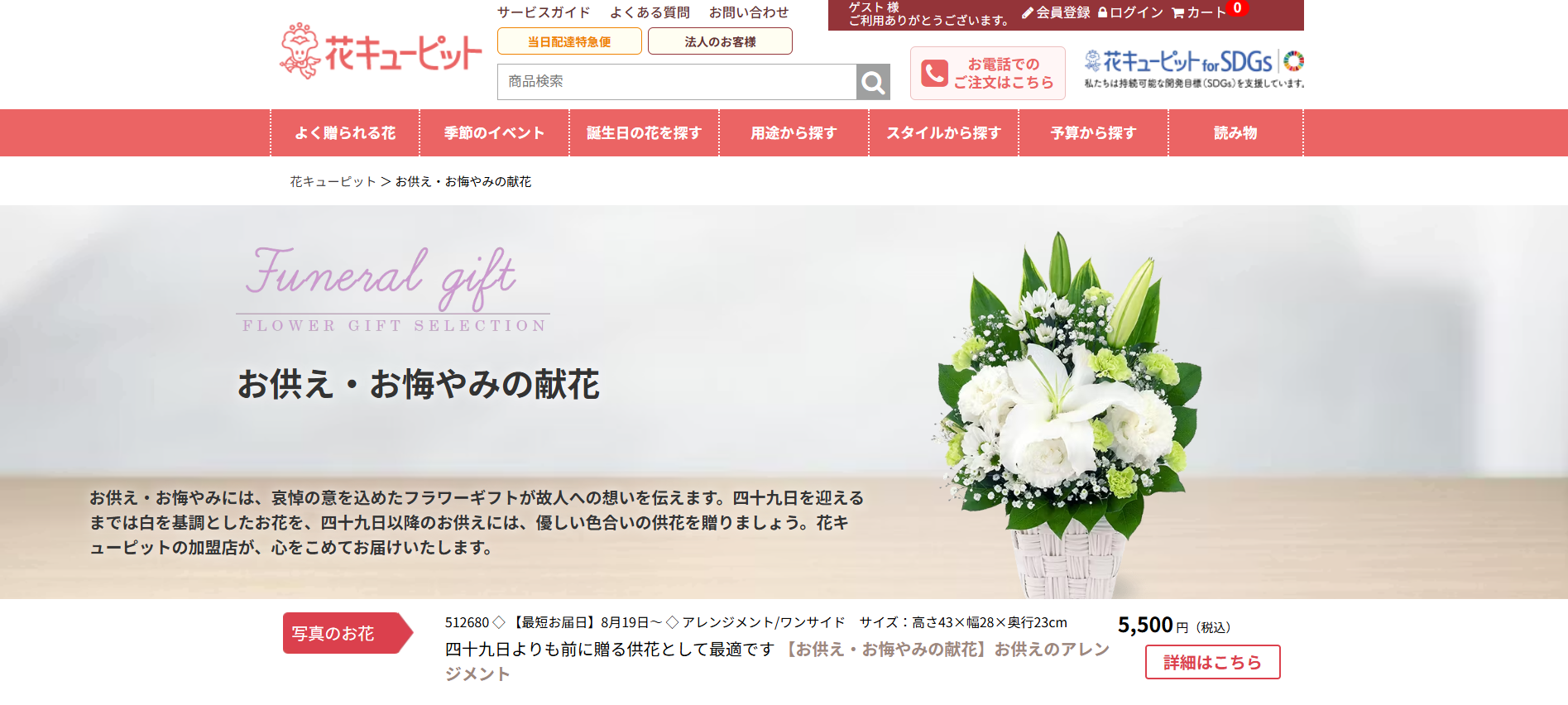 また、法人向けサービスやペット供養用フラワー、お菓子とのセットギフトなども提供し、用途に応じた贈り物が可能です。公式サイトでは、花の選び方やマナー、相場などの情報も発信し、初めて利用する方にも分かりやすい内容となっています。