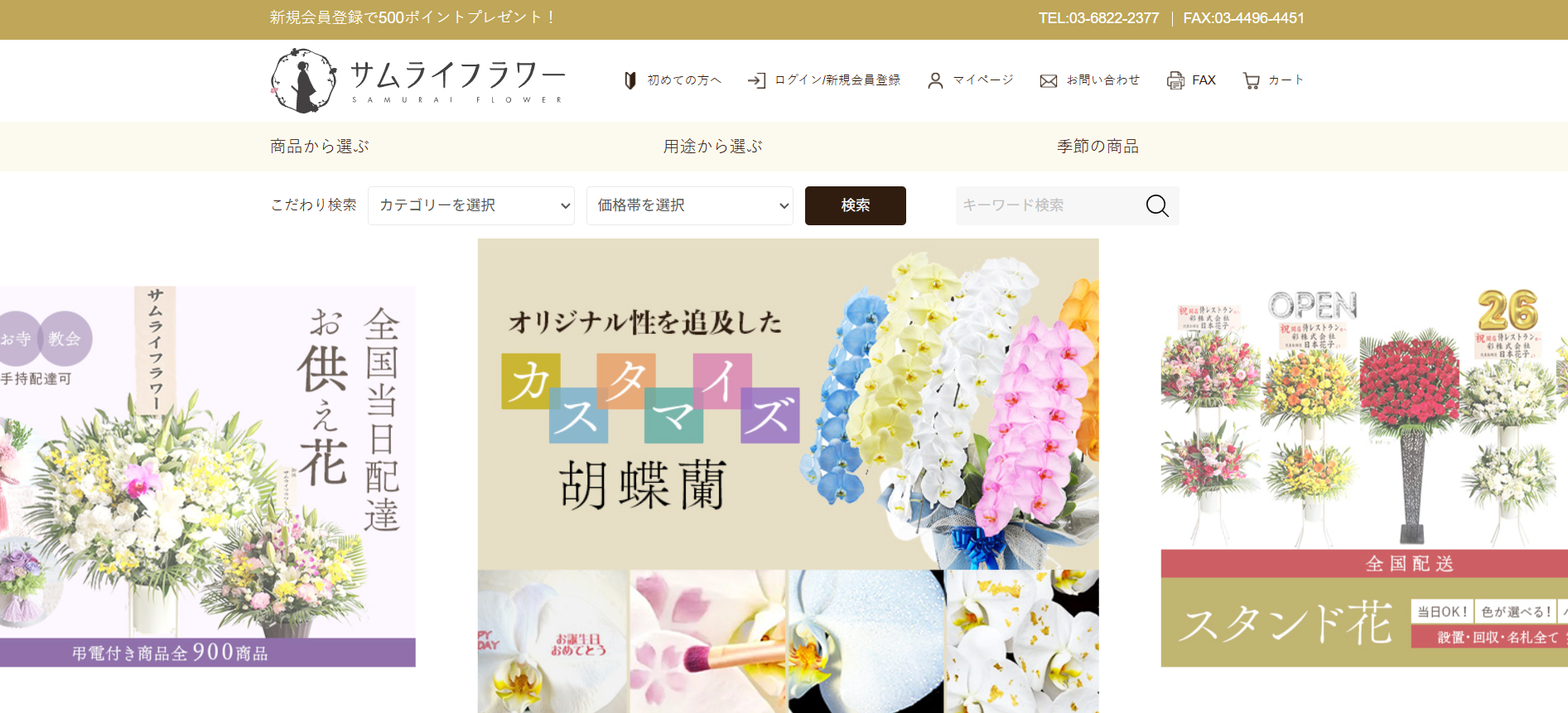 サムライフラワーは、お祝い花やお供え花を専門に扱うフラワーギフトの通販サイトです。