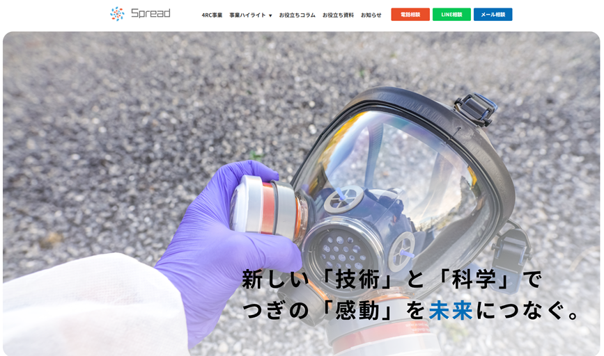 Spread株式会社(4RC)は火災や水災、カビ、孤独死、悪臭などによる衛生的被害を受けた環境(不動産資産)の復旧サービスを主として提供しています。
