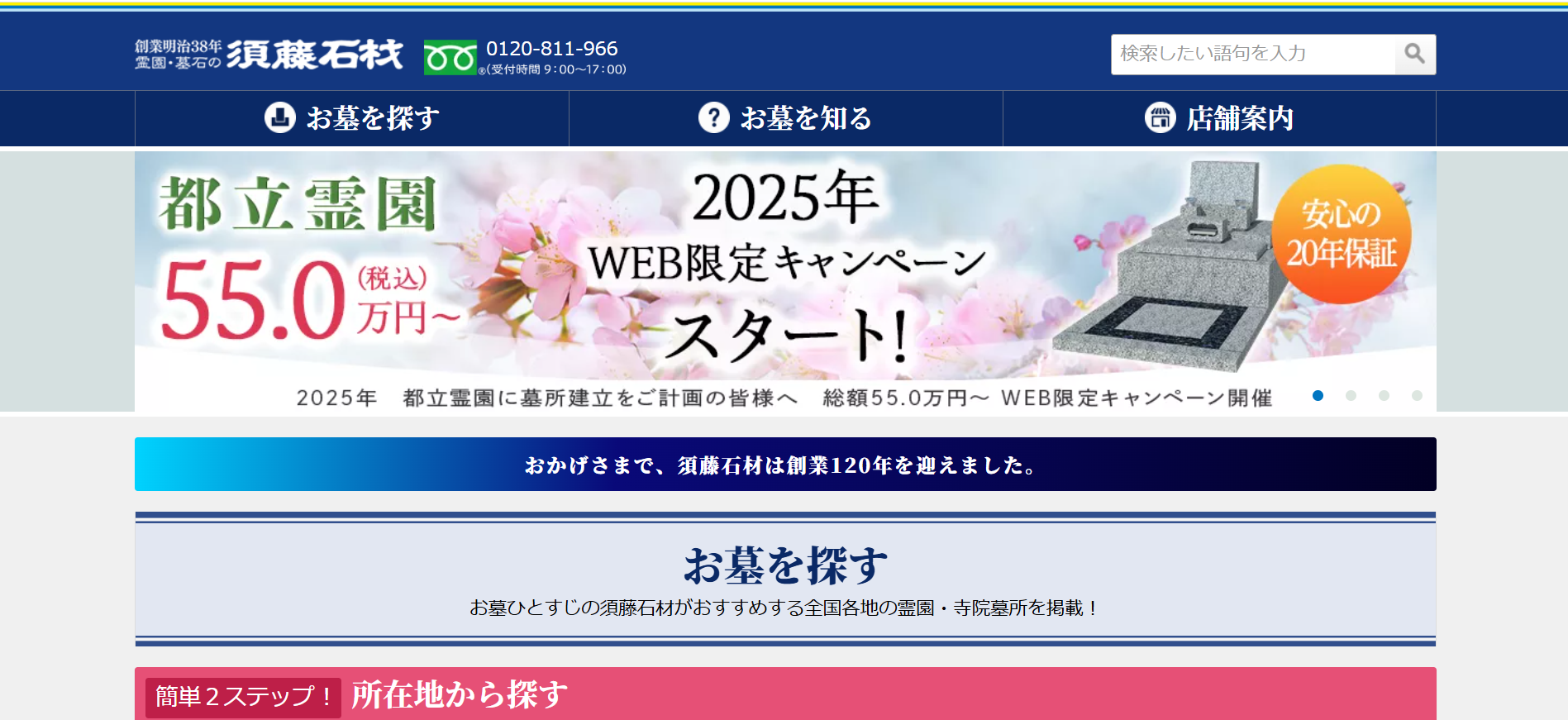 須藤石材株式会社は、創業120年の歴史を持つ老舗石材会社で、全国の霊園・墓所の紹介から墓石の施工、リフォーム、引越しまでお墓に関する幅広いサービスを提供しています。