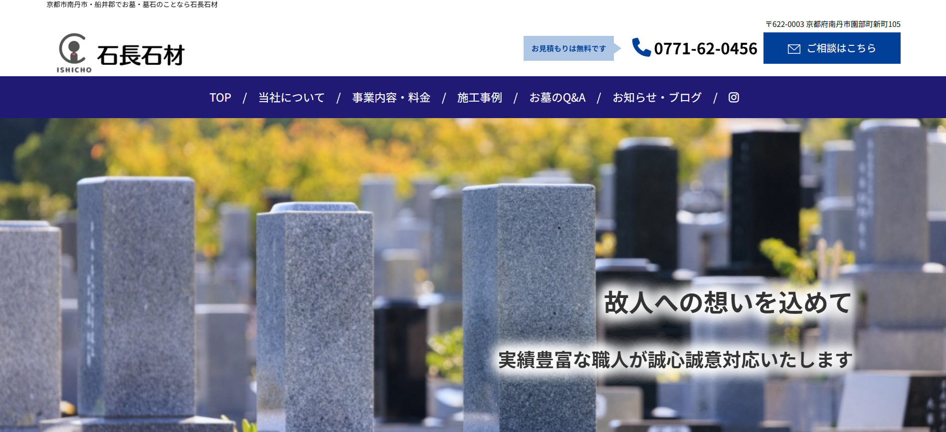 石長石材は、京都府南丹市と船井郡京丹波町に店舗を構える石材店です。