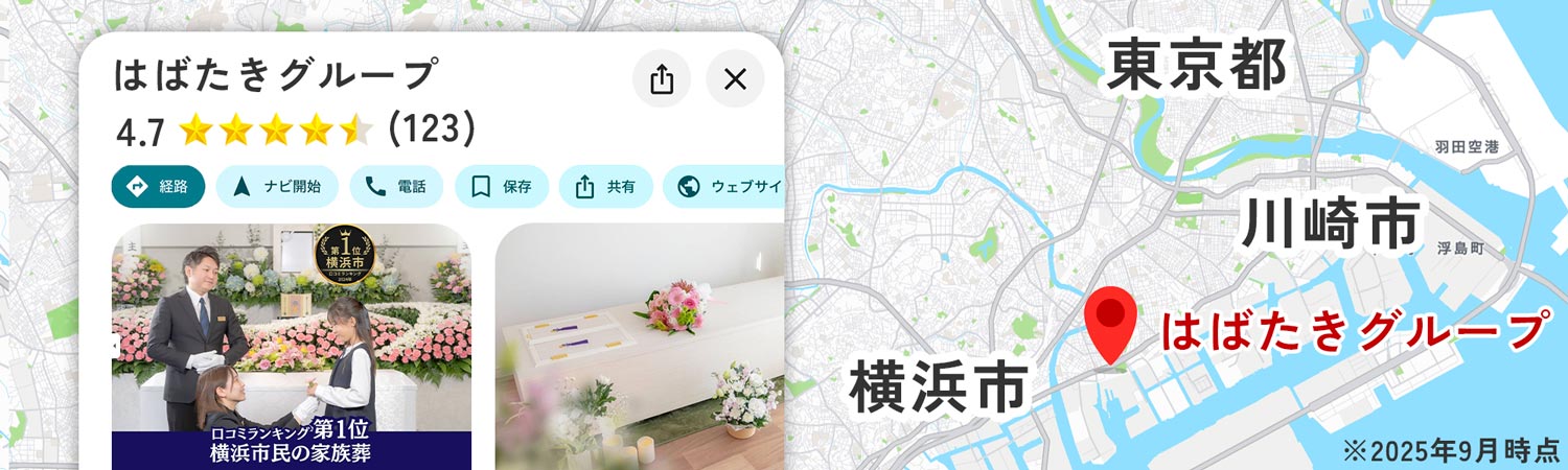 創業より多くのお客様にご依頼いただき、葬儀社口コミサイトの多数エリアで口コミランキング1位を獲得しております。(2026年1月時点)