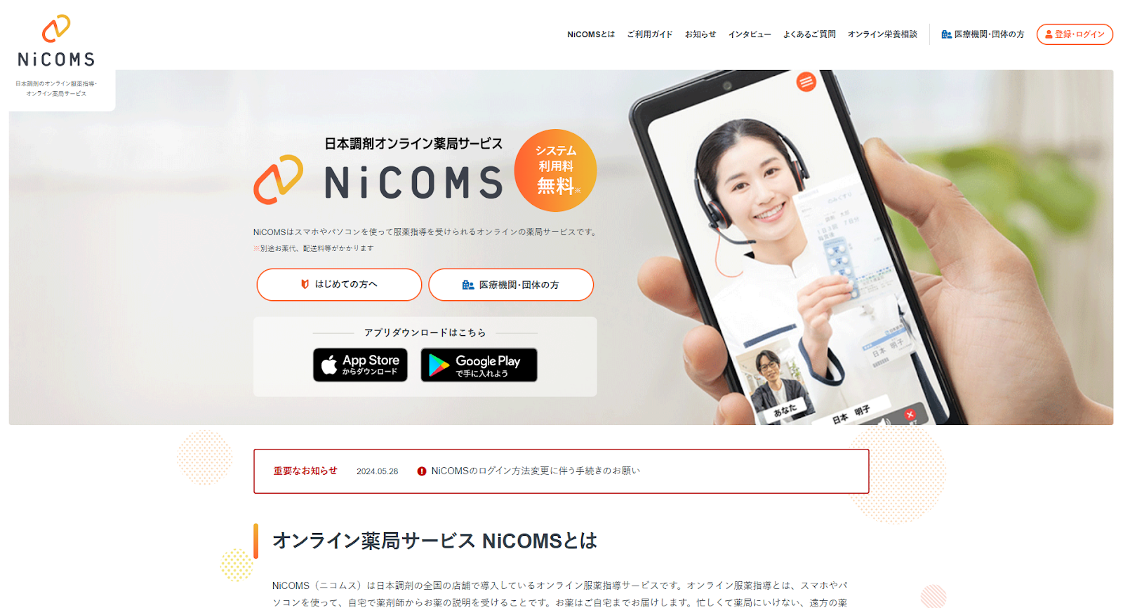 NiCOMS(ニコムス)は、日本調剤が展開するオンライン服薬指導サービスです。
