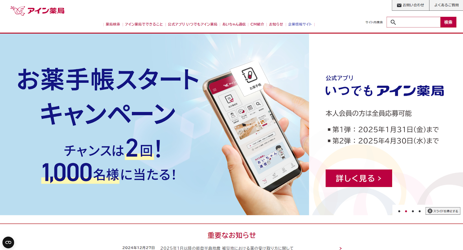 企業サイトでは、薬局検索や健康サポート情報、サステナビリティ活動、採用情報などが発信されており、患者・生活者・投資家に向けた情報が整備されています。